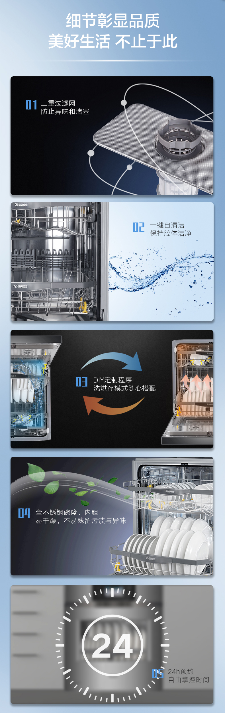 搭載雙擎熱烘干科技,除菌又除味;洗烘存一體,智能臟污識別,除菌率達(dá)99.99%