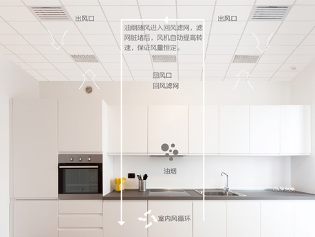 機組可智能檢測風口油煙臟堵程度,并自動匹配風機轉速,保證風量恒定,舒適不衰減。
